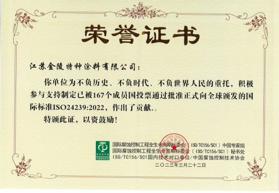 榮譽時刻┃金陵涂料參與制定國際標(biāo)準(zhǔn)并榮獲表彰